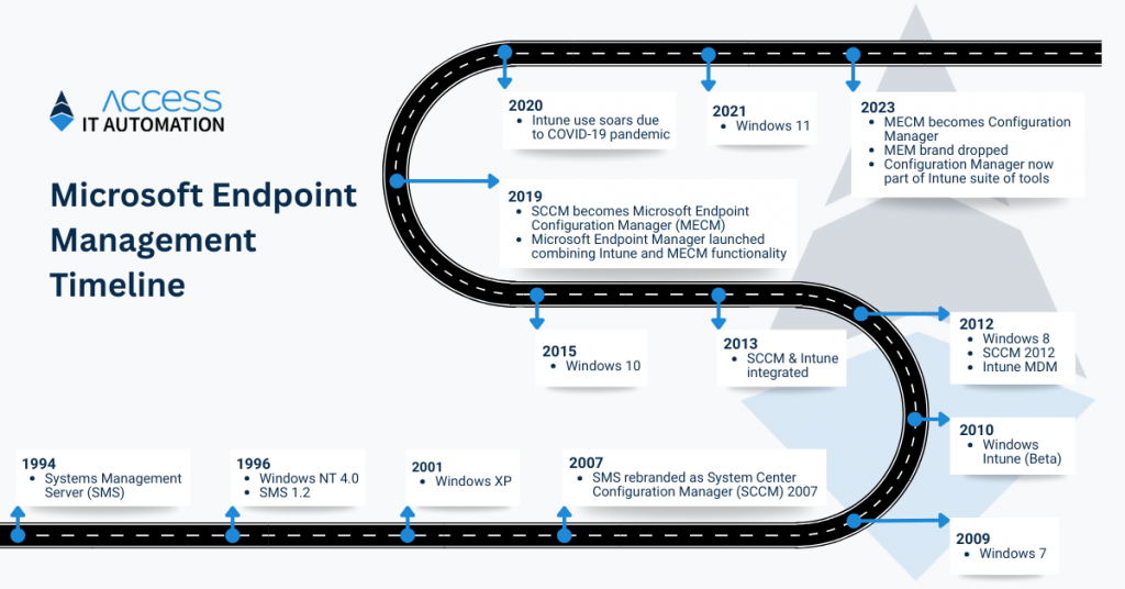 As you can see from our infographic, changes in Microsoft’s deployment systems, SCCM (now MECM) and Intune, have kept in sync with Windows operating system changes.
